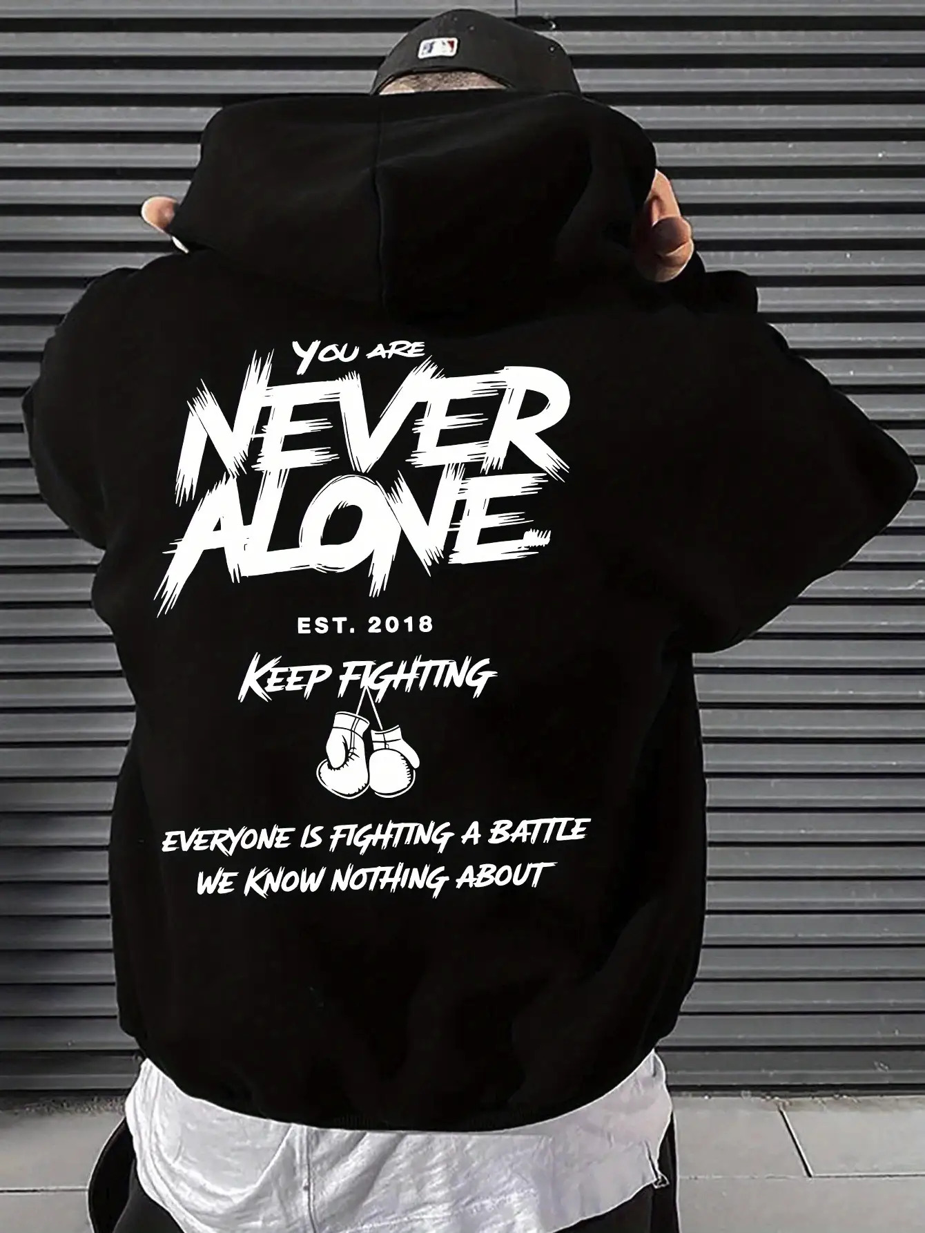 Men's Motivational Hoodie, Red Comfortable Streetwear Sweatshirt, "You Are Never Alone" Inspirational Message, Regular Fit Long Sleeve with Front Pocket & Adjustable Hood, All-Season Positive Affirmation Design for Everyday Casual Wear