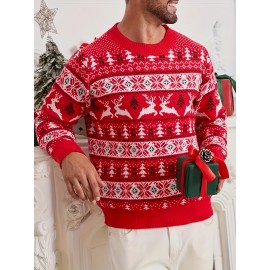Men's Christmas Knit Sweater - Loose Fit Round Neck Pullover, Traditional Holiday Party Attire, Winter Wedding & Xmas Party Outfit, Cozy Autumn/Winter Sweaters for men, Christmas Gift (Hand Washable)