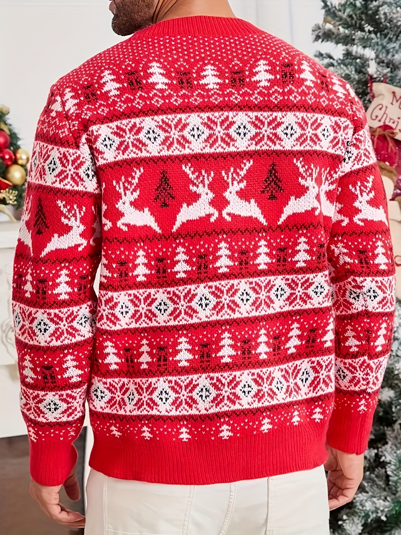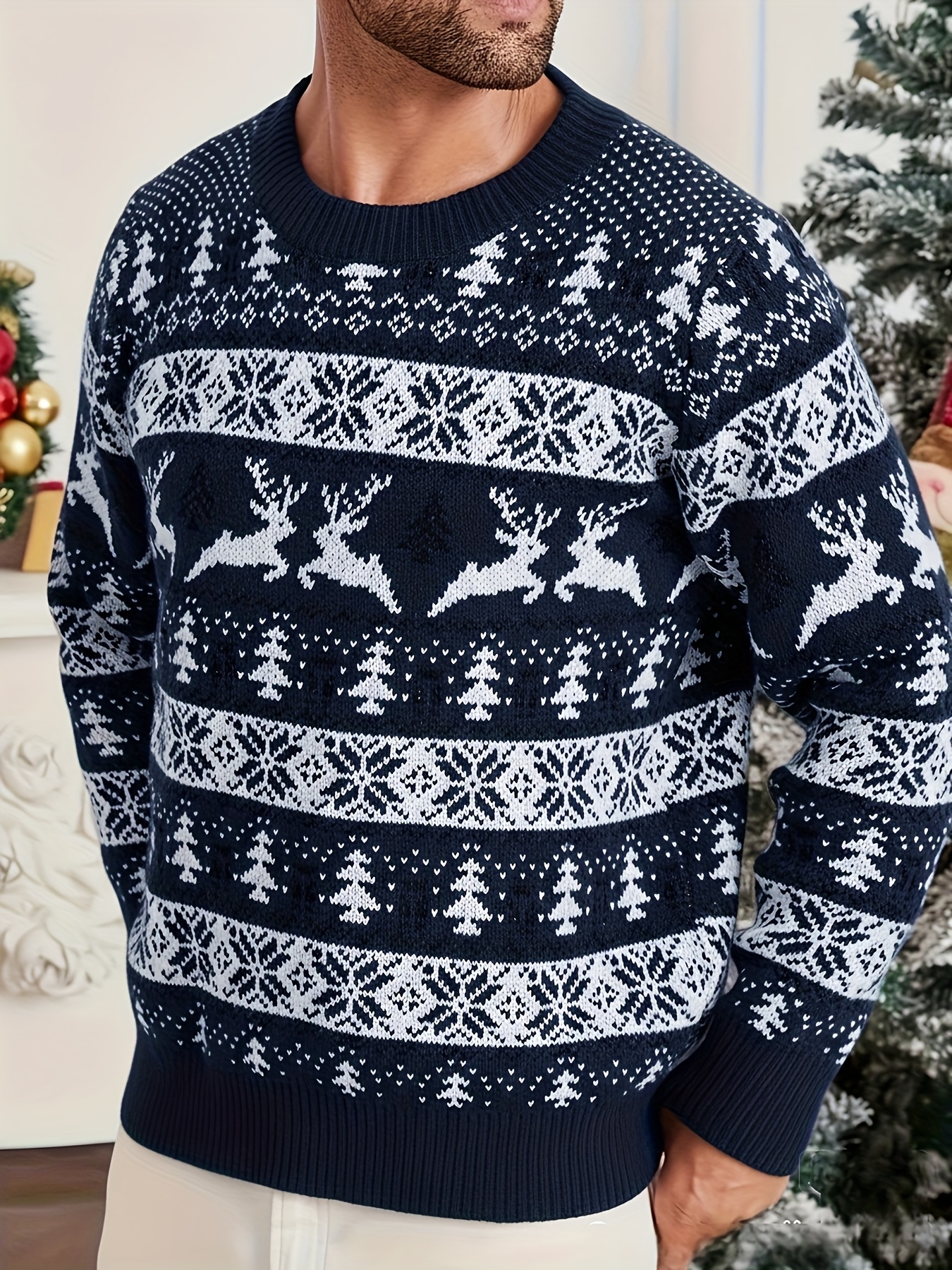 Men's Christmas Knit Sweater - Loose Fit Round Neck Pullover, Traditional Holiday Party Attire, Winter Wedding & Xmas Party Outfit, Cozy Autumn/Winter Sweaters for men, Christmas Gift (Hand Washable)
