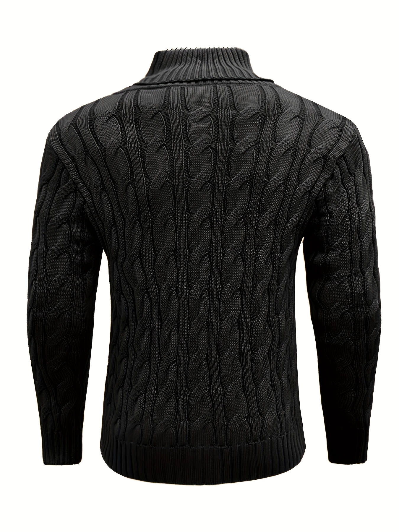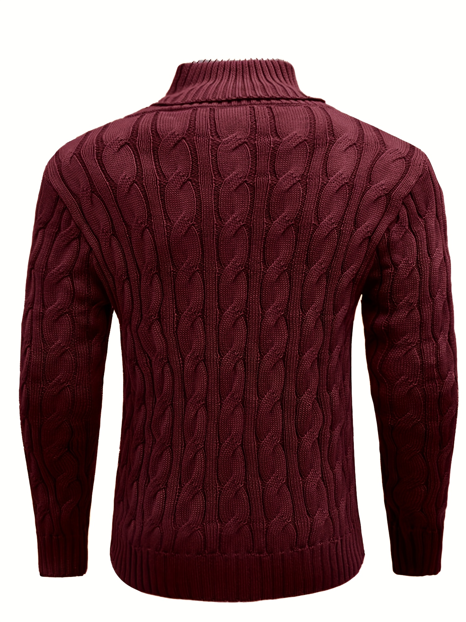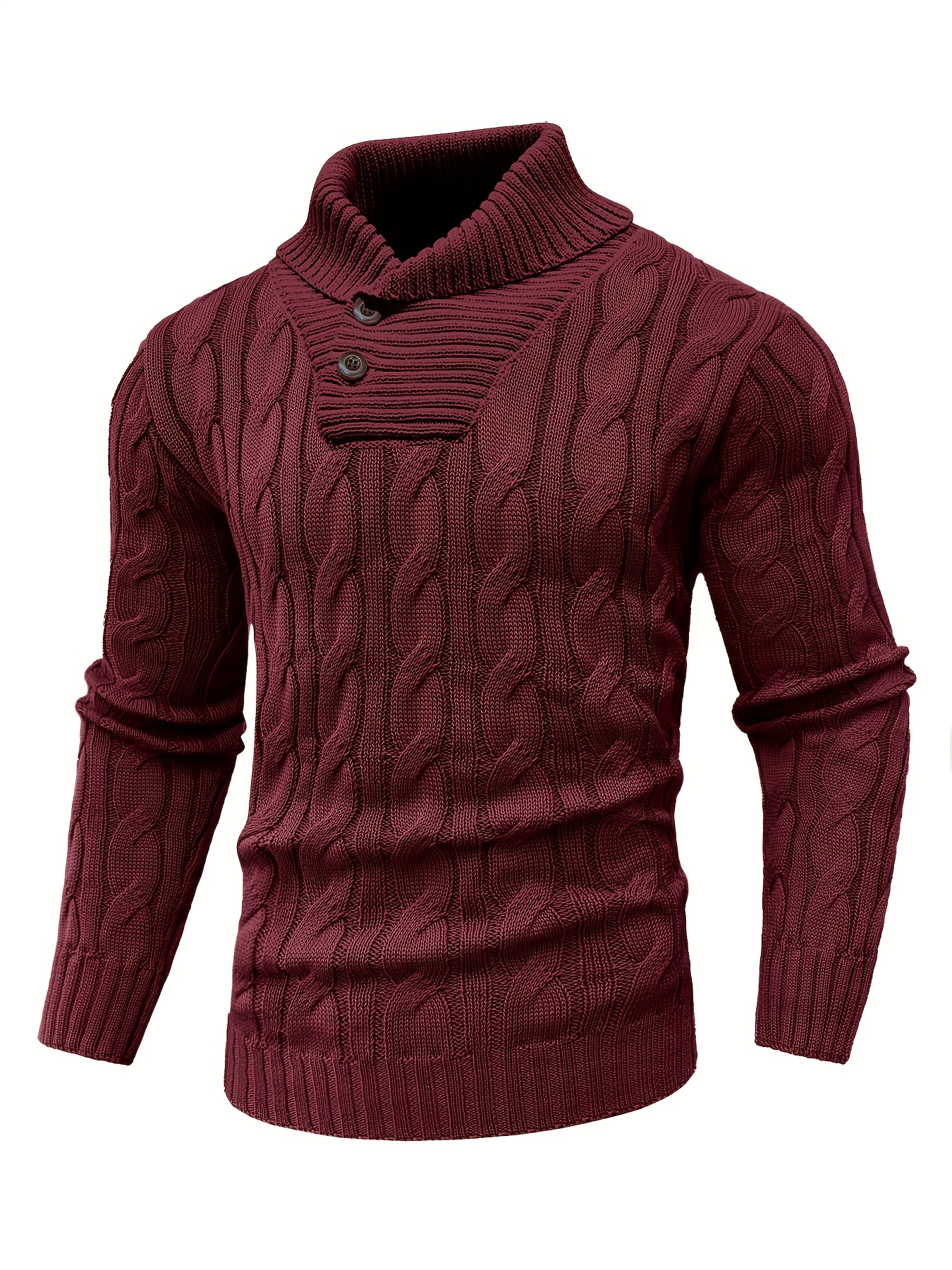 Men'S Lapel Pullover Cable Knit Long Sleeve Warm Sweater