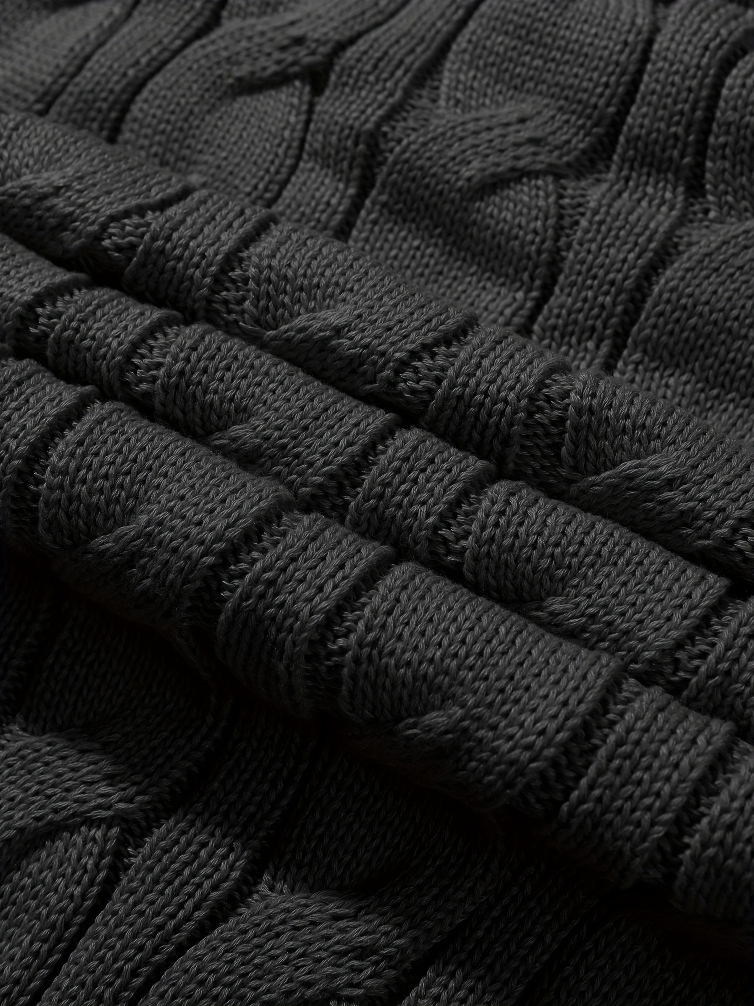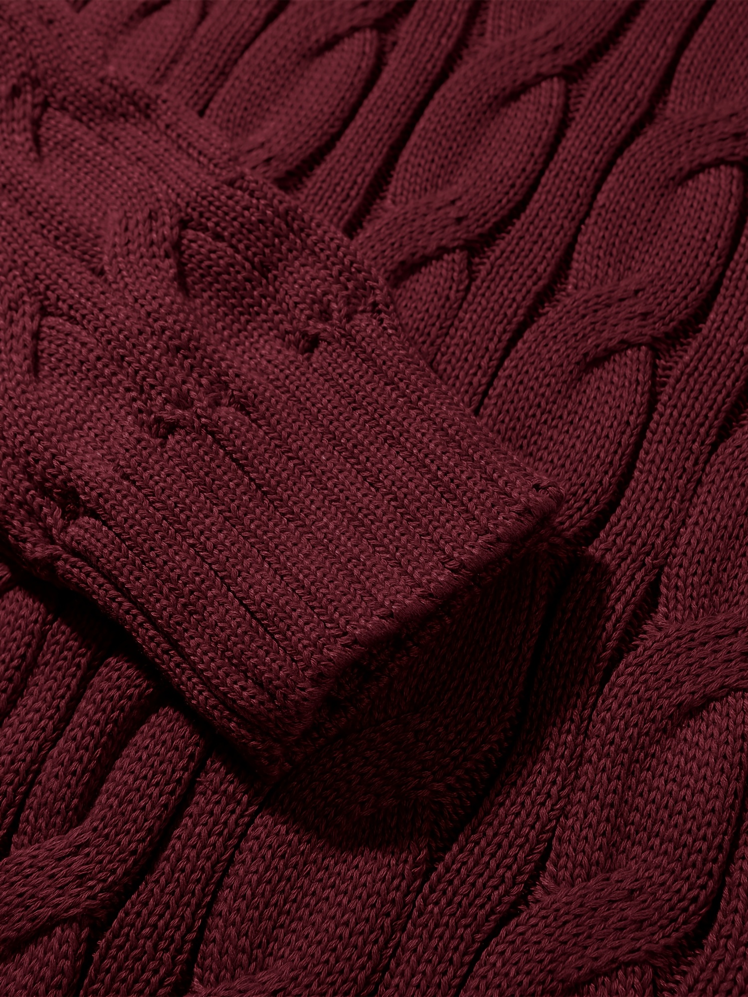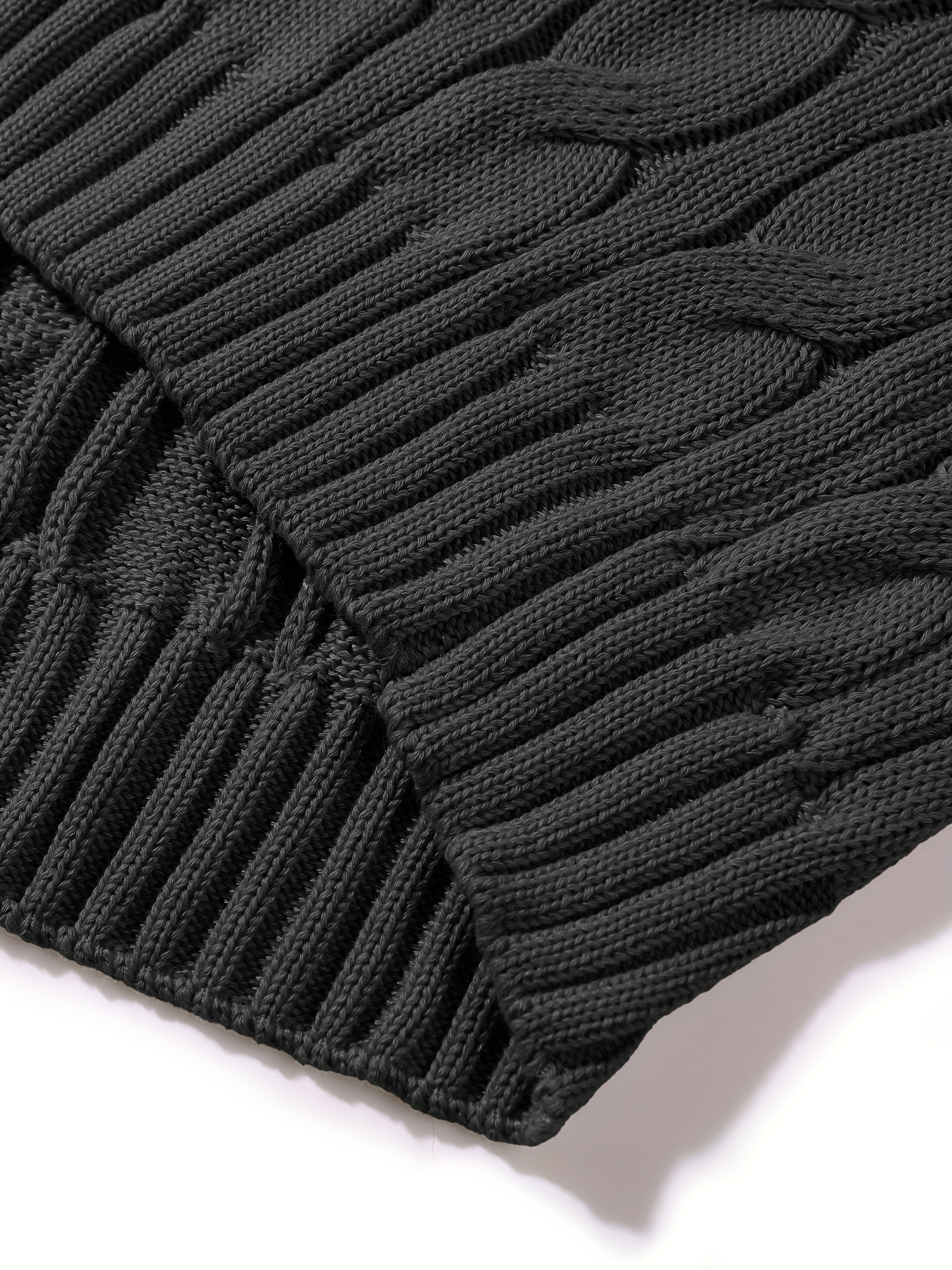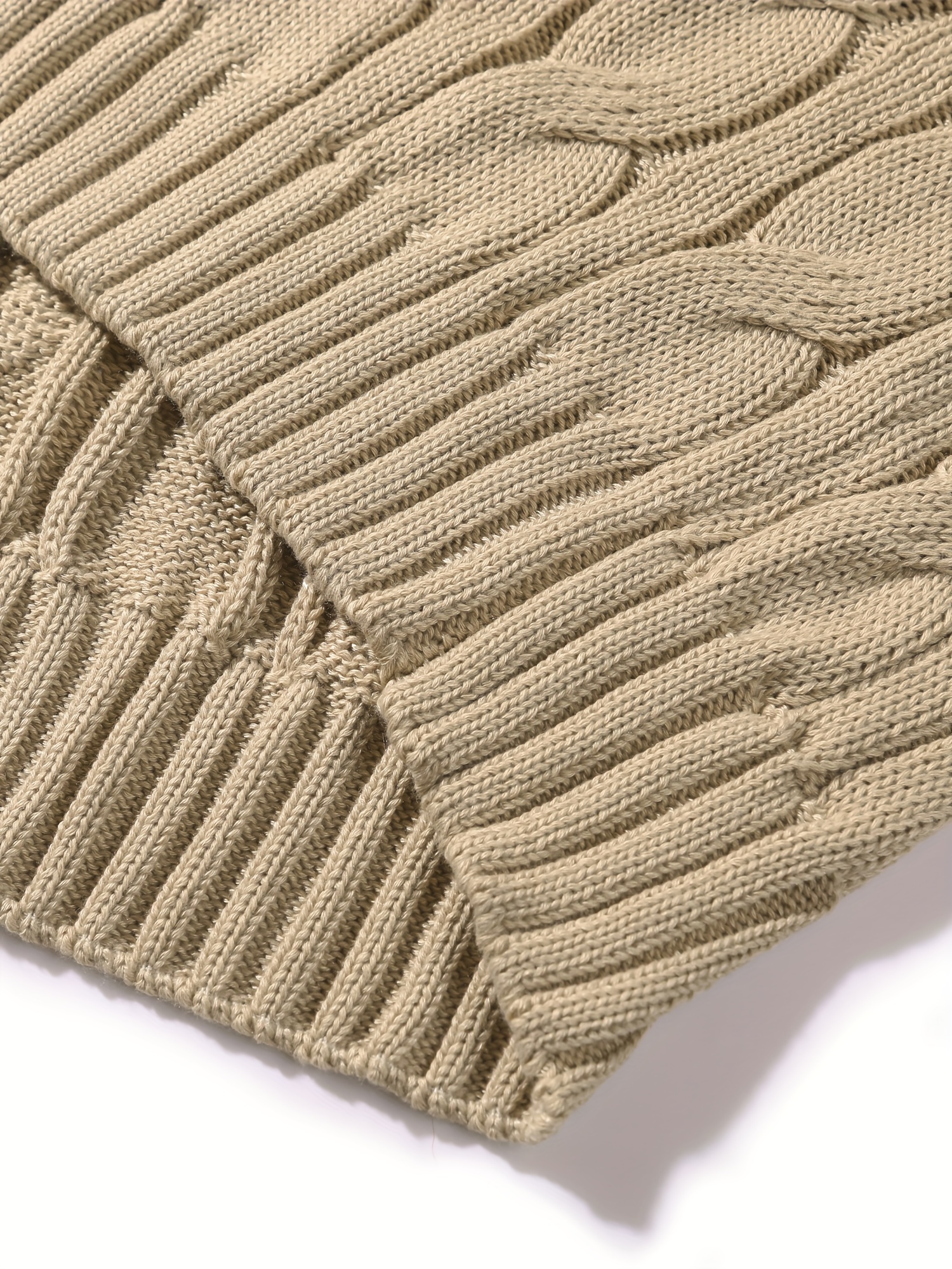 Men'S Lapel Pullover Cable Knit Long Sleeve Warm Sweater