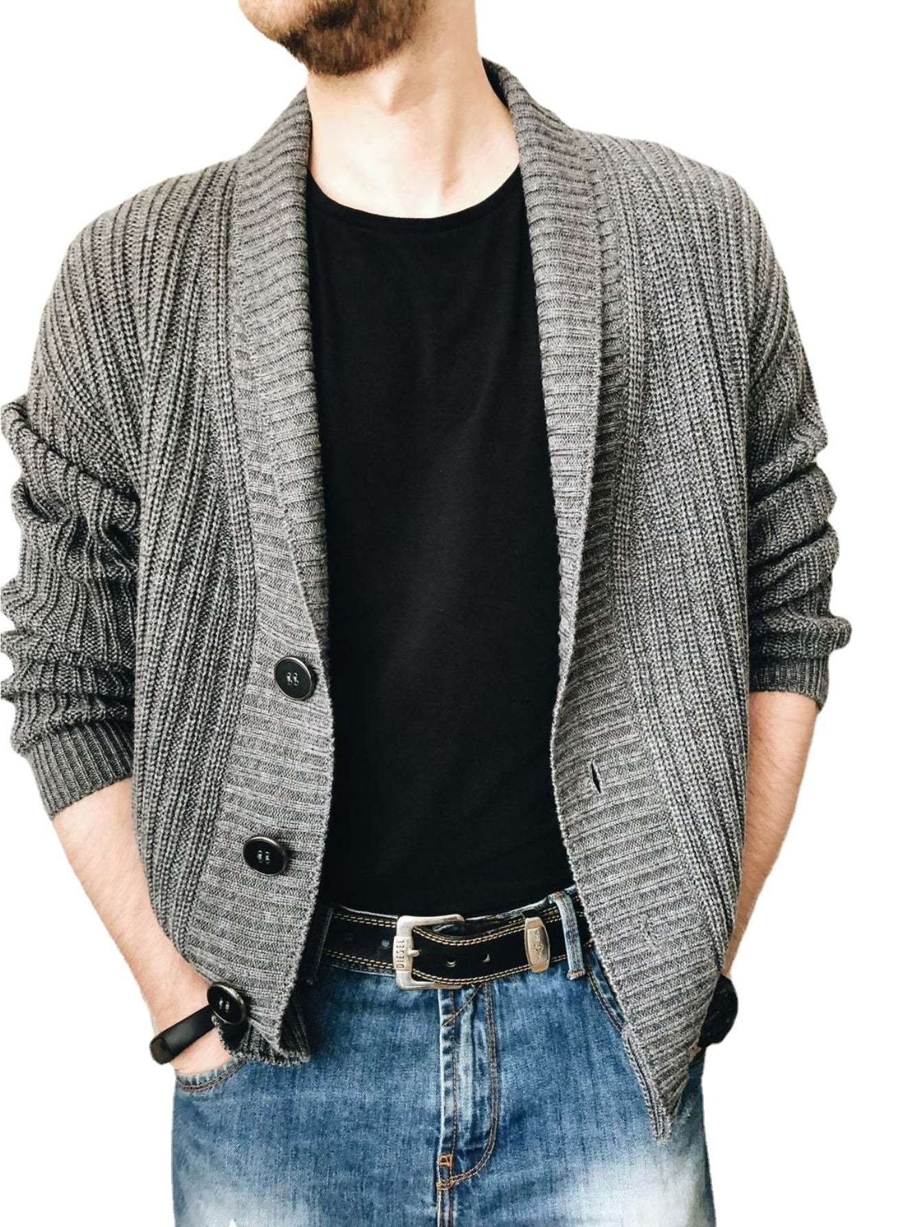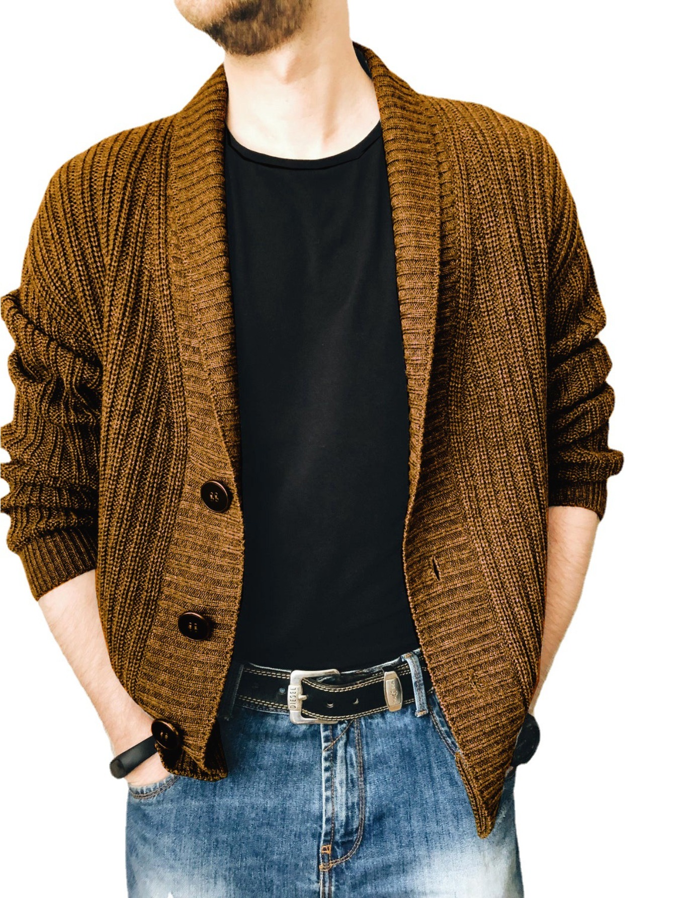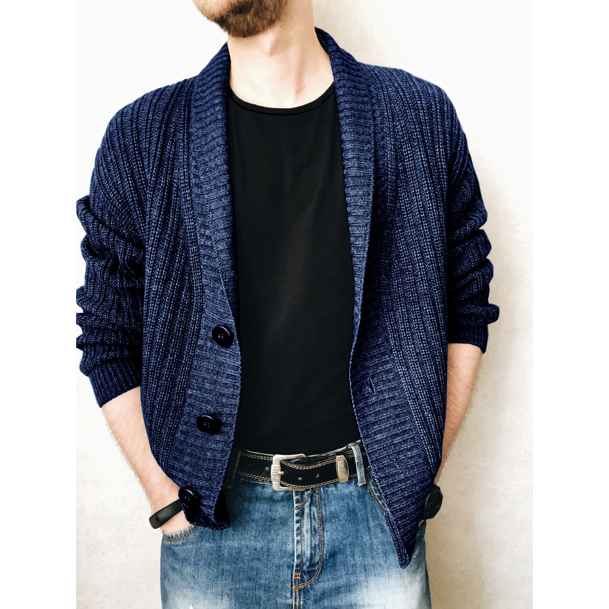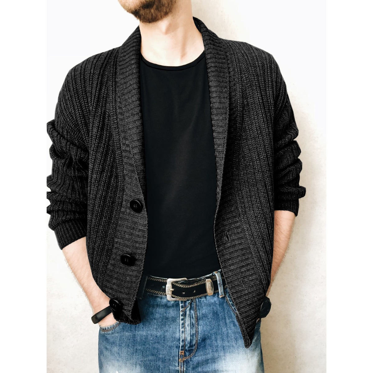 Men'S Oversized Two-Tone Knit Cardigan Sweater - V-Neck Button-Front Closure, Cozy Winter Pullover with Chest Pocket, Slim-Fit Casual Sweater for Coffee Dates & Weekend Outings, Y2K Retro Layered Outfits (Autumn/Winter) - Solid Color Block Design