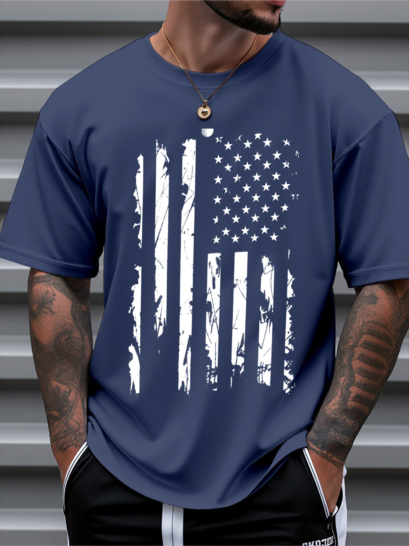 Men's American Flag T-Shirt 100% Cotton Regular Fit Casual Short Sleeve Patriotic Stars & Stripes Design for Summer Daily & Outdoor Wear, American Flag Shirt, Soft Fabric Tee, Outdoor Apparel, Classic Style, Durable Construction, Mens Tshirt, Summer Wardrobe