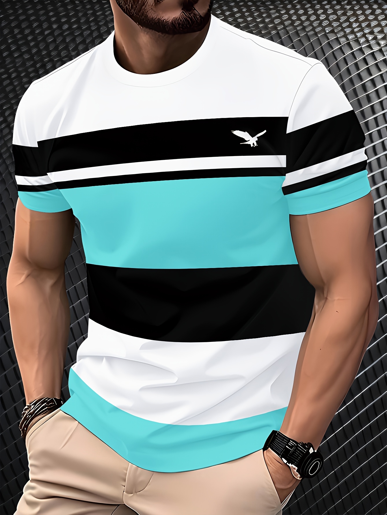 Men'S Modern T-Shirt - Lightweight Breathable Crew Neck Tee with Non-See-Through Fabric - All-Season Casual Everyday Shirt - White/Black/Teal Color Block Design - Regular Fit for Office, Parties, Outings - Easy-Care Everyday Essential, Party Outfit, Stylish Print, Durable Construction, Short Sleeve Top, Young Adults