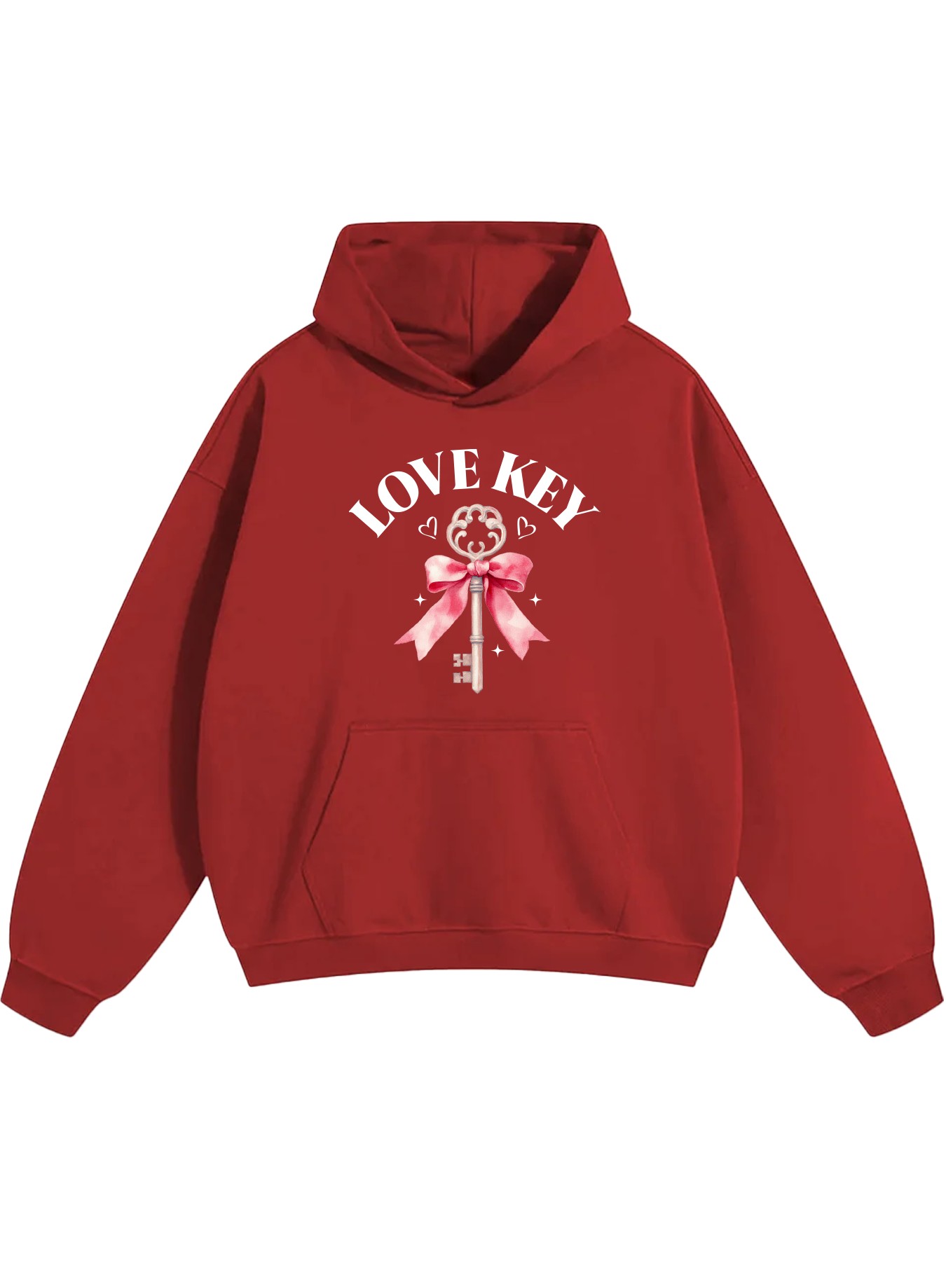 Men'S Autumn & Winter Hoodie with "LOVE KEY" Slogan | Vintage Key with Pink Bow and Small Heart Graphics, Casual Style, Regular Fit, Long Sleeve, Digital Heat Transfer, Pullover