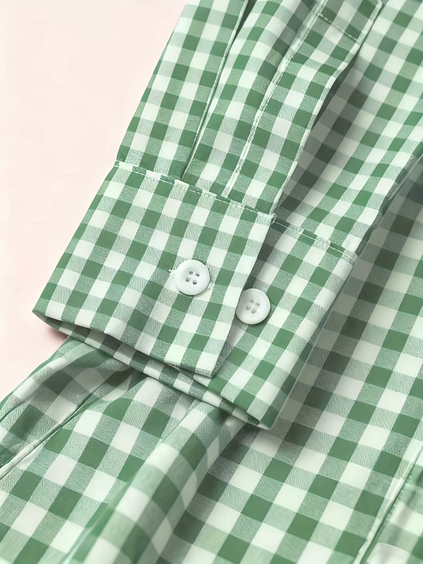 Elson OBM Men's Classic Plaid Button-Up Shirt - Long Sleeve Formal and Casual Top, Non-Stretch Fabric, Front Button Closure, Turn-Down Collar, Office, Wedding, Party Attire - Ideal Gift for Men, Office Wear, Fashion Design, Durable Construction