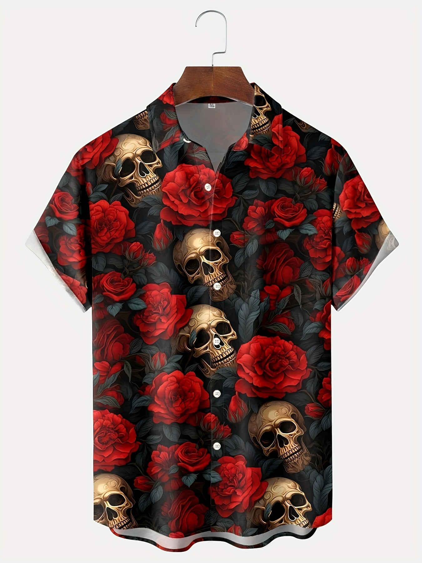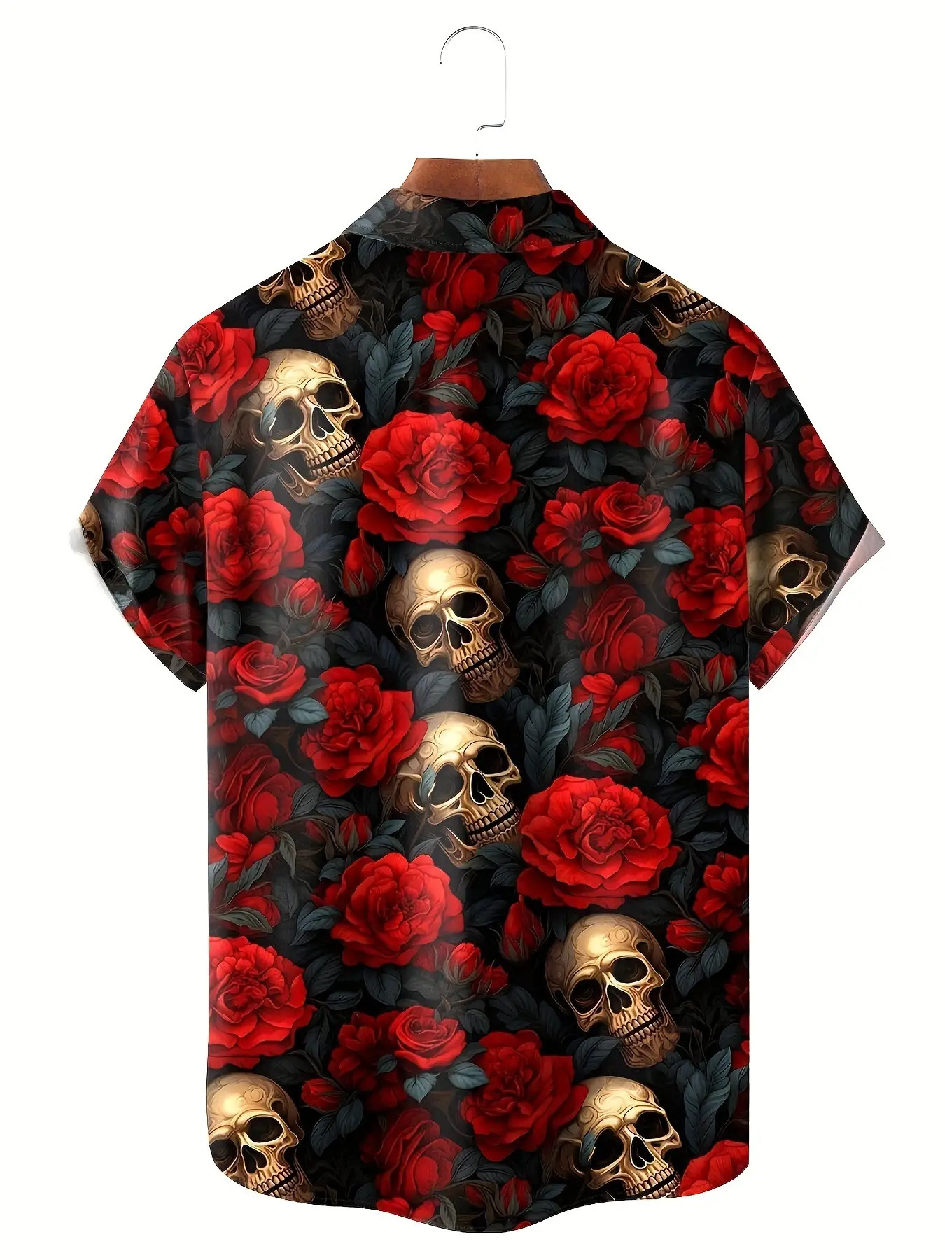 Men'S Plus Size Gothic Rock Music Shirt - Hawaiian Button-Up Blouse with Skull & Rose Print, Black & Red Vintage Style Formal & Halloween Party Outfit - Lightweight Summer Shirt for Concerts, Themed Events - Adult Men'S Clothing, Style Clothe For Men, Men Short Sleeve Shirt, Hawaiian Shirt For Men, Summer Shirt For Men, Hawaiian Shirt Men, Men Hawaiian Shirt, Men Dress Shirt, Men Shirt, Men Clothe