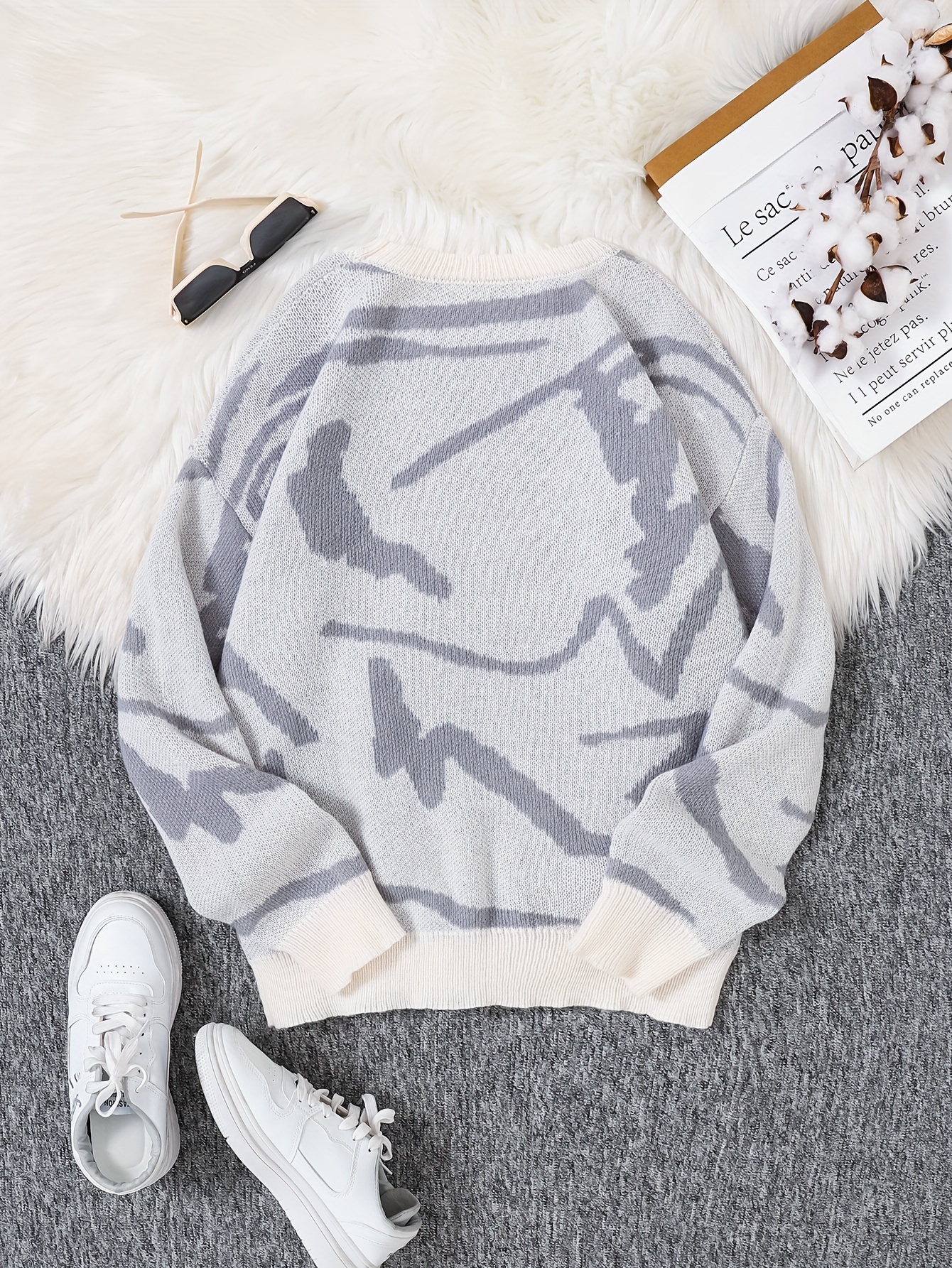 Men's Soft Beige & Brown Geometric Pattern Sweater - Casual Round Neck Long Sleeve Knit Pullover, Warm Winter & Spring/Fall Layering, Comfortable Beige & Brown Color Block Sweater for Men, Versatile Everyday & Formal Outfits, Hand Washable Knit Sweater with Modern Geometric Design, Relaxed Fit for Autumn and Spring Wear, Stylish and Cozy Knitted Top, Knit Sweater Men, Knitted Sweater Men