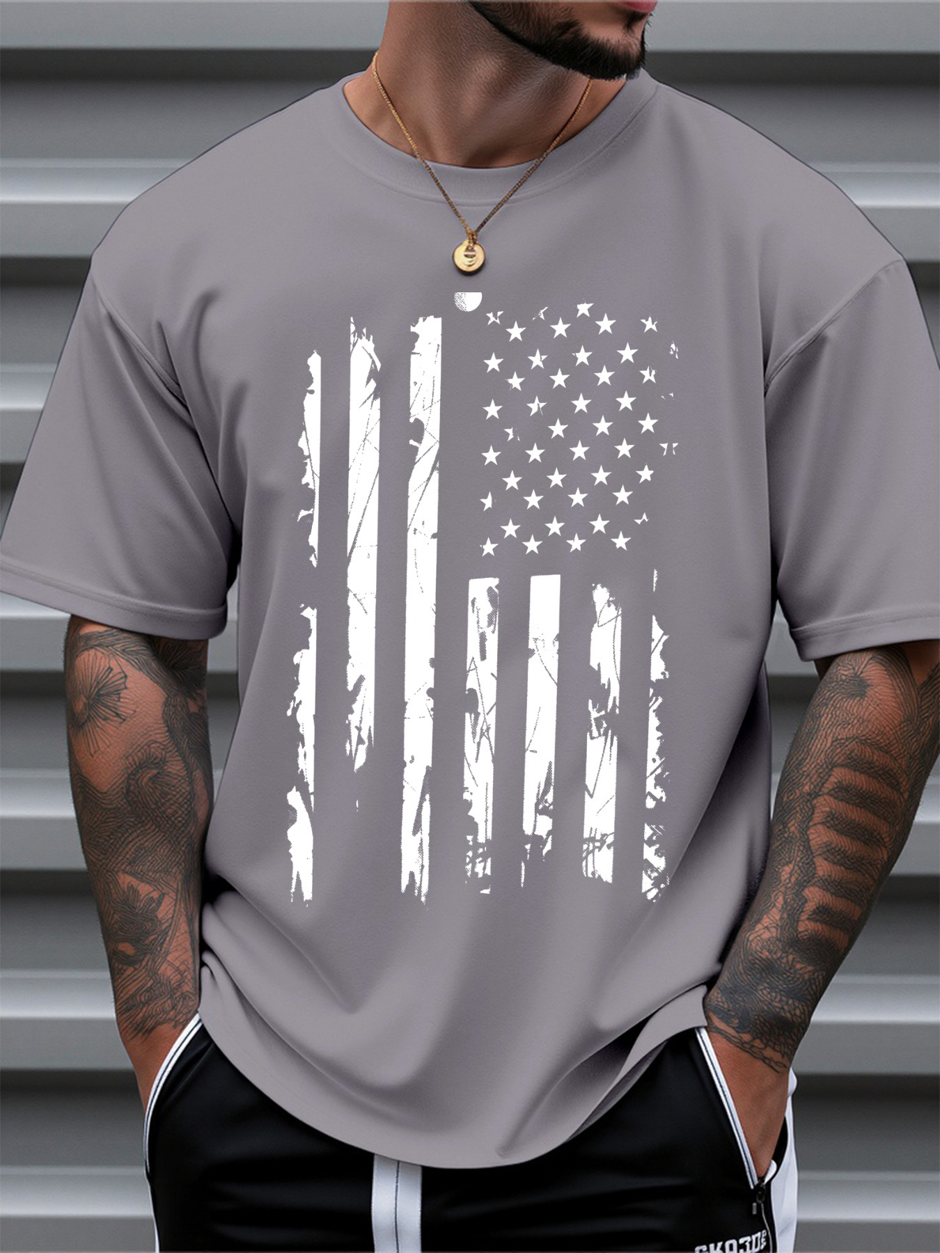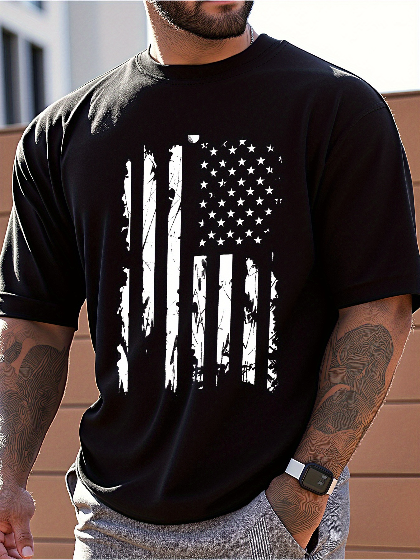 Men's American Flag T-Shirt 100% Cotton Regular Fit Casual Short Sleeve Patriotic Stars & Stripes Design for Summer Daily & Outdoor Wear, American Flag Shirt, Soft Fabric Tee, Outdoor Apparel, Classic Style, Durable Construction, Mens Tshirt, Summer Wardrobe