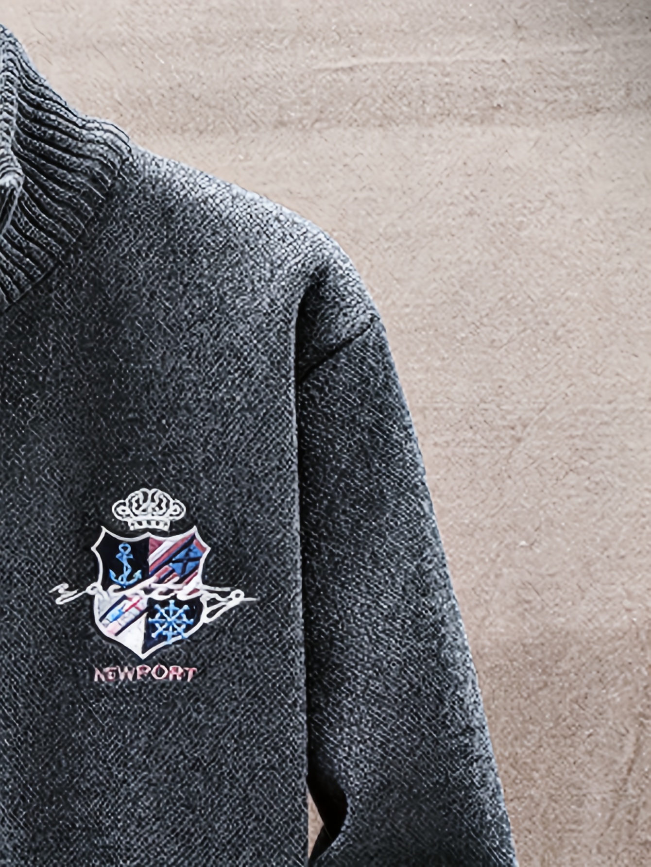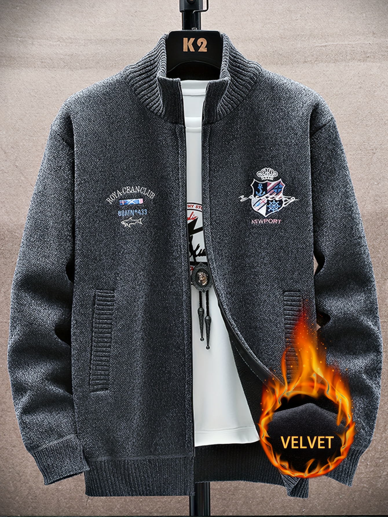 Men'S Thick Warm Winter Jacket with Plush - Geometric Pattern Full-Zip Casual Coat, Stand Collar & Long Sleeve, Grey/Navy, Versatile Outerwear for Everyday & Semi-Formal Occasions, Durable & Comfortable Cold-Weather Coat