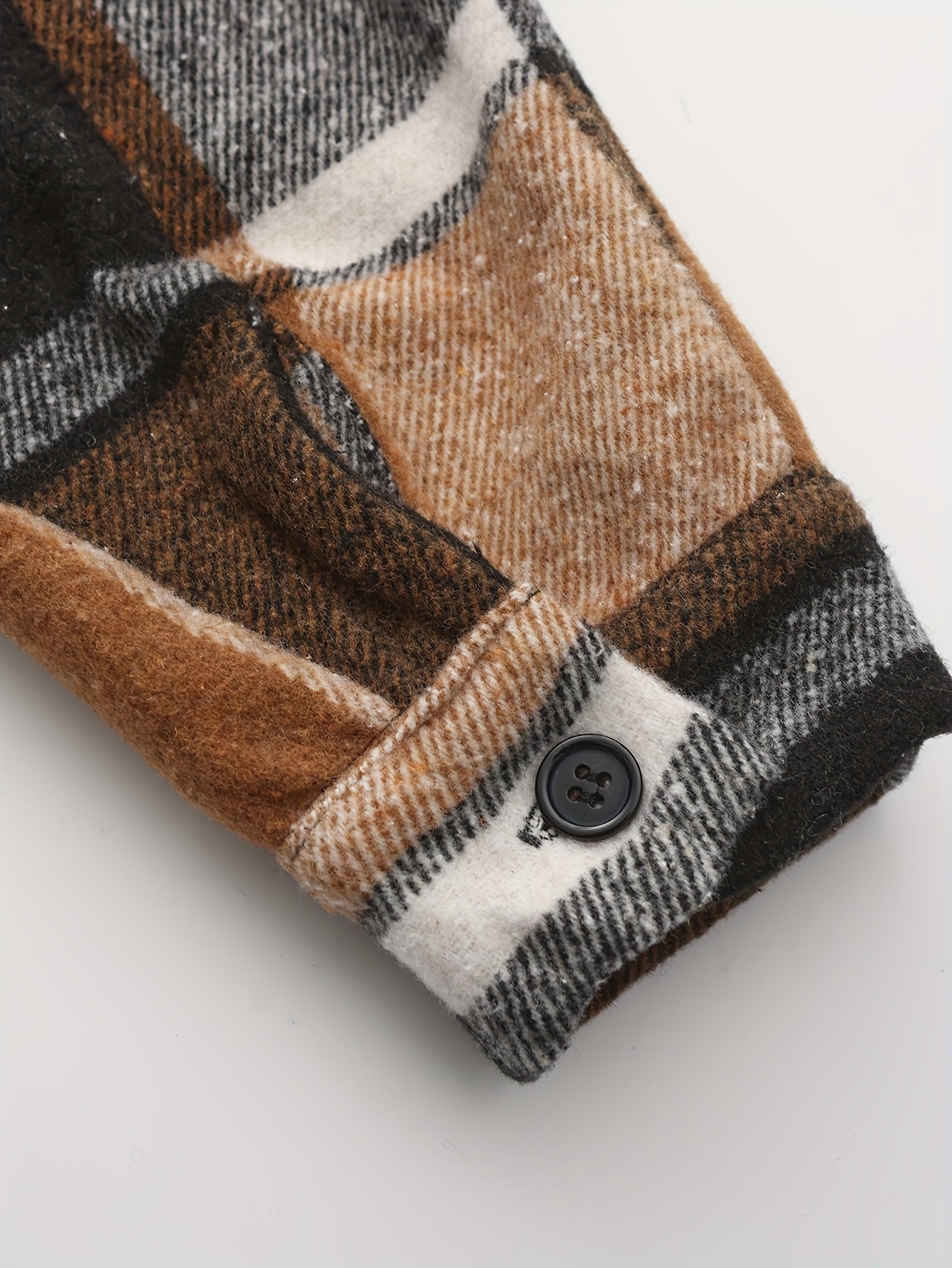 [Vintage Plaid Shirt] Vintage Plaid Shirt for Men | Single-Breasted, Loose Fit, Long Sleeve Casual Top | Black & White Checkered Pattern, Button-Up Front, Nonelastic Fabric | Perfect for Fall/Winter Outings & Casual Wear